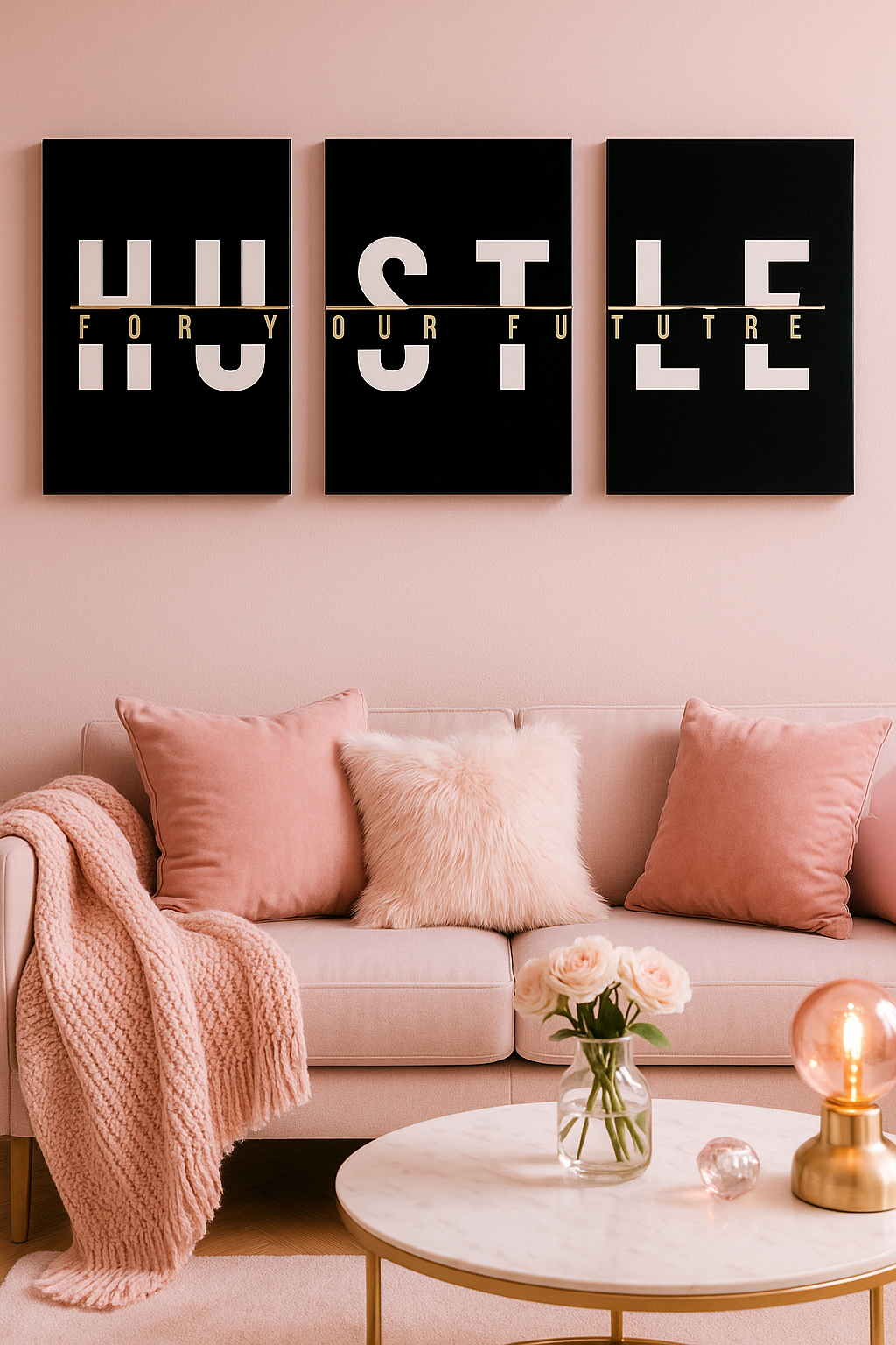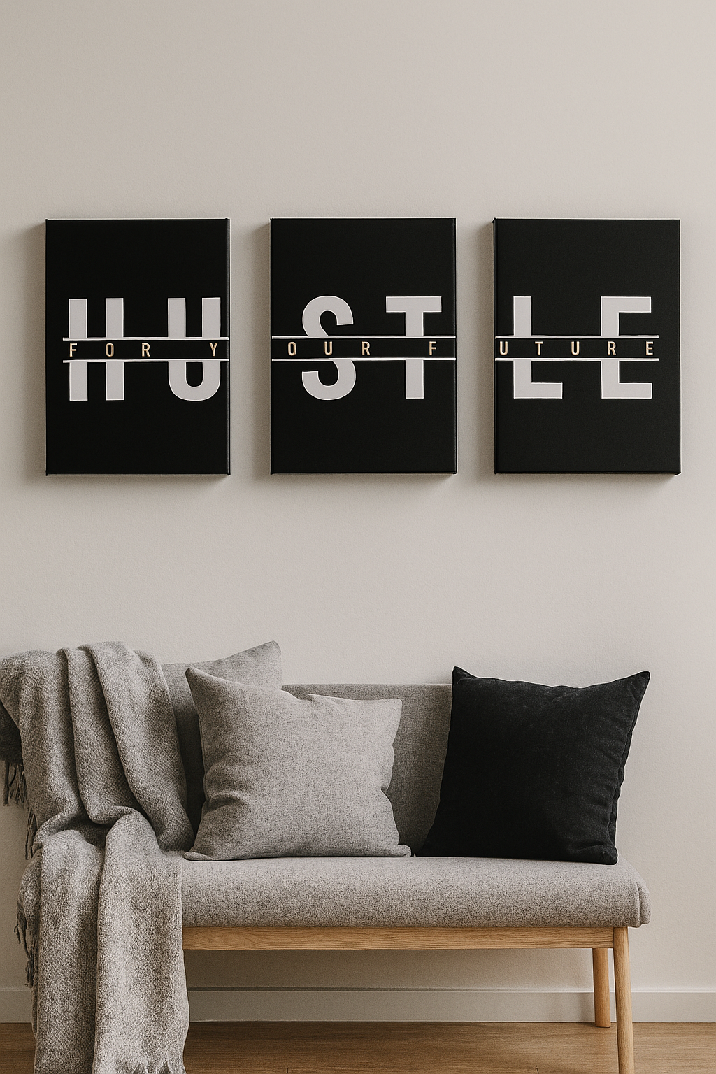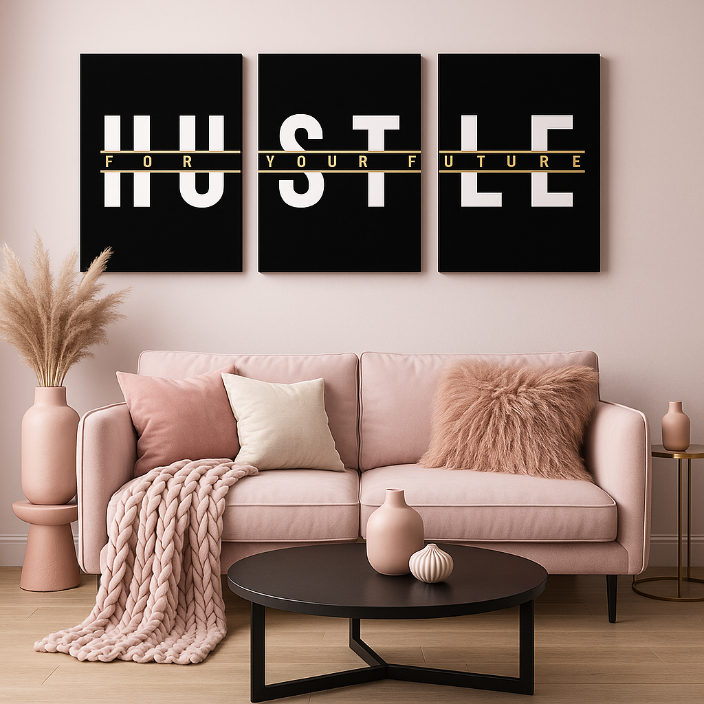 3-Piece “HUSTLE FOR YOUR FUTURE” Wall Art Set – Motivational Canvas Prints (12x16in, Unframed)