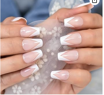 This glossy nude pink coffin set comes with 24 press-ons that snap you straight into clean girl slay mode. French tip realness, soft glam energy, and a price tag that don’t hurt your pockets.
